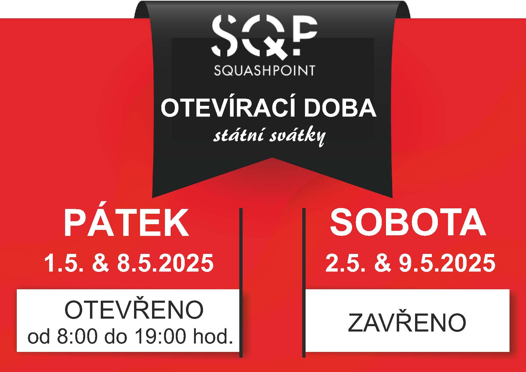 během státních svátků bude upravena otervírací doba areálu SQP: