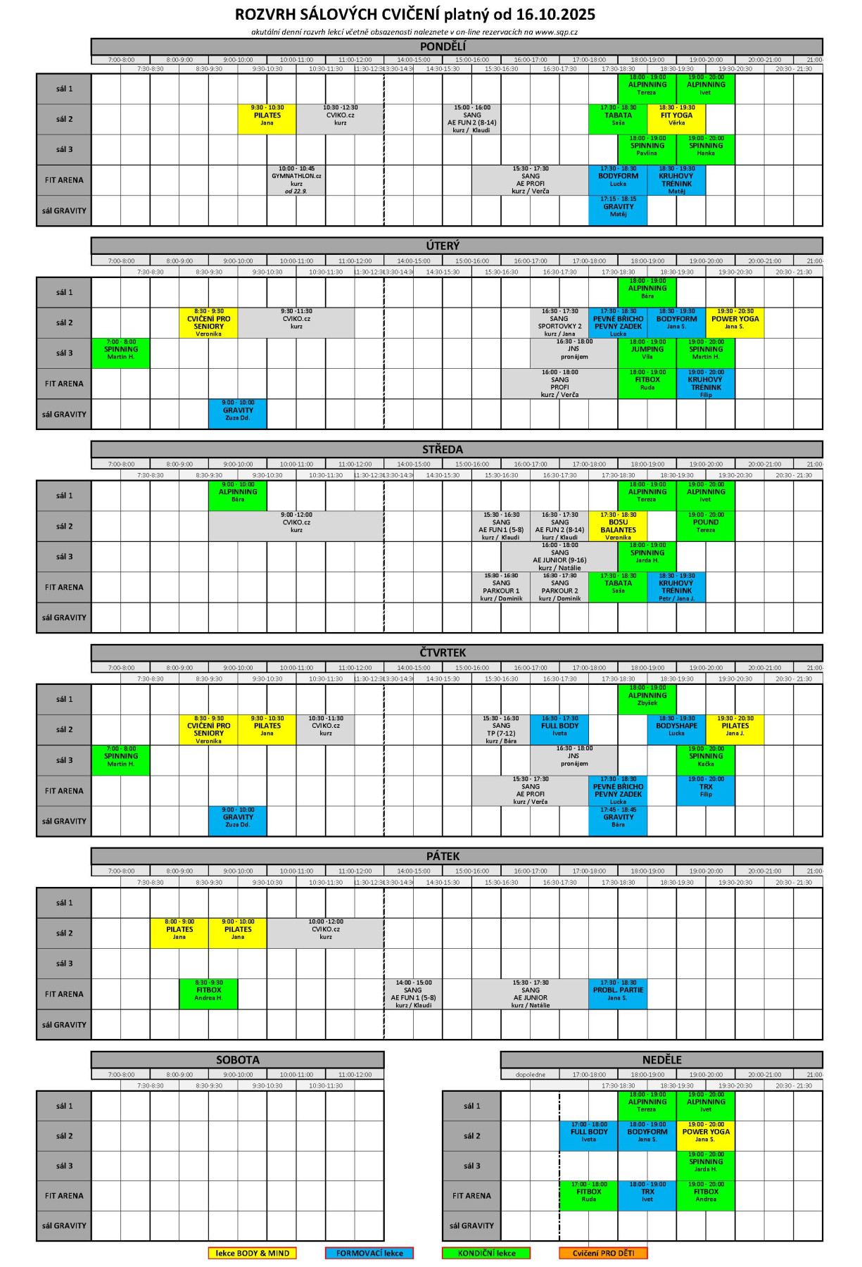 AKTUÁLNÍ ROZVRH SKUPINOVÝCH LEKCÍ